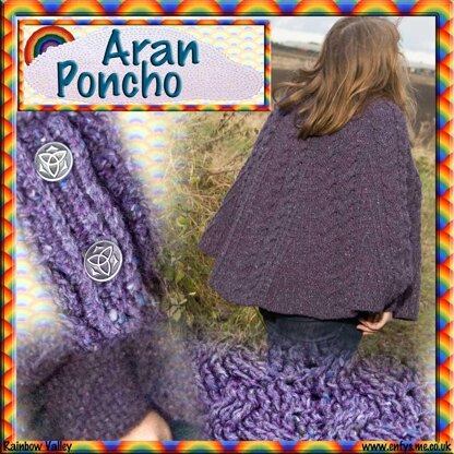 Materials: Aran Tweed Knitting Wool from Kilcar in Donegal, Ireland. 200g skeins (Length = 320 m / 350 yards) Lilac-4812. The Poncho uses 8 skeins. The Hat uses 1 skein and the Mittens use 1 skein.