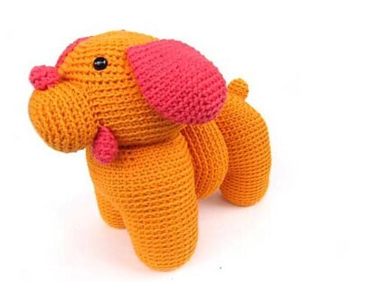 Archer is 10" tall when completed with worsted weight yarn. He's a cuddly pup!