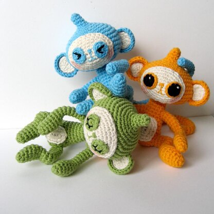 Archie is a baby Leaf-Eating Monkey. When these cute critters are little, they have bright orange fur and big expressive eyes – perfect inspiration for an amigurumi!
