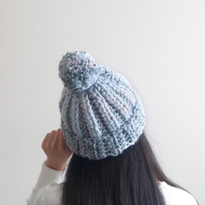 The Arctic Ice beanie a wonderful quick and easy crochet project for fall! This pattern is wonderful for crochet beginners as the adult beanie takes an hour to make or less for more experienced crocheters! The stitches are worked in rows to create a knit-look crochet beanie! You can top your beanie with a large, wool pom pom (as pictured), a faux fur pom pom or leave off the pom pom entirely – whatever floats your boat! The fast crocheting time means you can make it in many different colours and it would a great Christmas gift!
