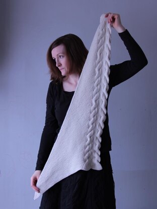 Size Cast on edge: 13 cm / 5” Length of cable: 81 cm / 32” Bind off edge: 51 cm / 20" Garter edge: 109 cm / 43”
