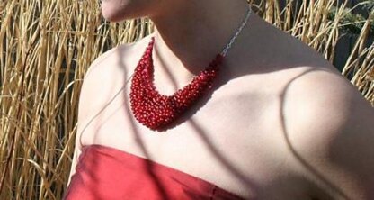 If you’d like to see full information about this pattern, please visit http://www.ravelry.com/patterns/library/aril-necklace . . . . . . . If you’d like to see other work by Kourtney Robinson, please visit her designer page here http://www.ravelry.com/designers/kourtney-robinson . . . . . . . Aril is the proper name for the each of the edible, densely packed, gem-like seeds of a pomegranate. This pattern uses linen stitch and beads to create a simple yet spectacular necklace. The necklace is knit from the tip up in a modified slipped linen stitch, with increases at the beginning and end of each row. You will need about 400 beads and 25 yards of laceweight yarn, as well as chain, a clasp, and two jump rings.
