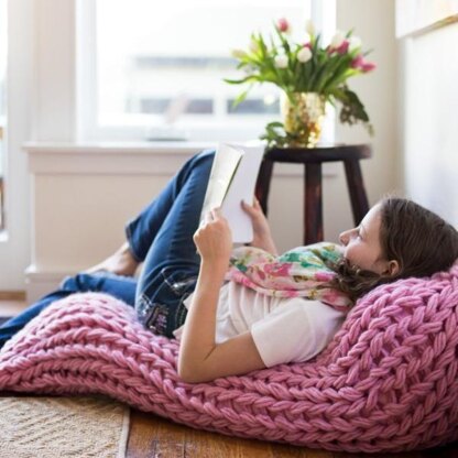 Kick your feet up and get your hands busy with this easy to make arm knit lounger. In no time, you’ll be reading a favorite book or watching a must-see show in style on this luxurious lounger (22” x 58”). Follow the easy step-by-step directions for how to arm knit. Then, make this gorgeous pillow in a couple of hours! The chunky modern knit adds lovely texture to any interior space.