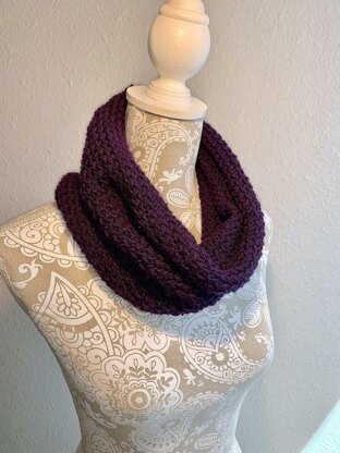 Approximately 280 yards of a worsted weight yarn is needed for this cowl. I used Hobby Lobby's I Love This Yarn in the Purple colorway for this sample.
