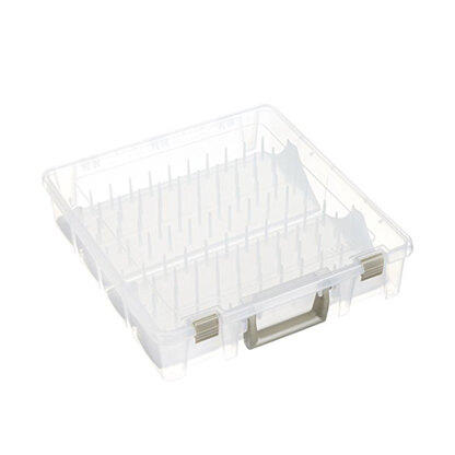 ART BIN-Super Satchel Box with 2 Removable Thread Trays securely holds thread spools regardless of how the closed box is stored. Spool trays offer the capacity to hold (224) 20mm spools (108) 32mm spools or (30) 45mm spools. Designed to easily stack and work together. Molded in translucent Acid Free polypropylene.