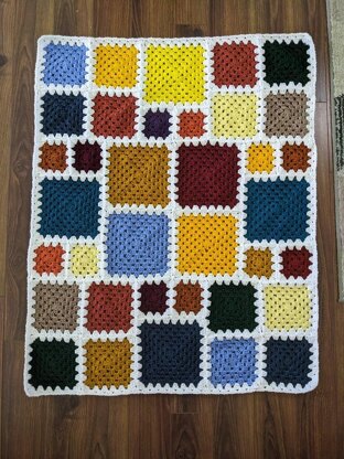 Finished size: is approximately 8 x 6.4 times bigger than your 5-round square. Sample measures 43” x 34”.