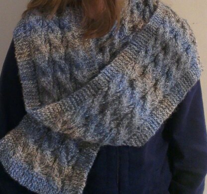 The 'Aspect Cable Scarf' can be knit in Dk, Aran /Worsted or Chunky / Bulky yarn. Choose needle size to match yarn.