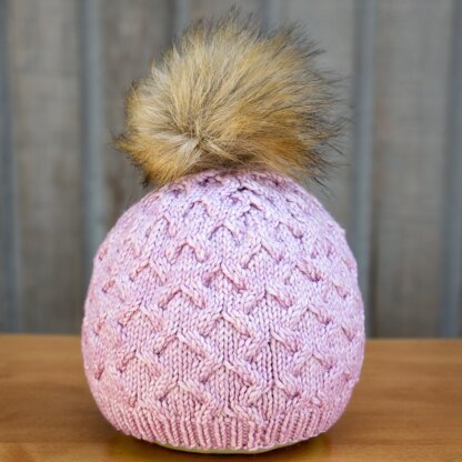 Astrophil is a worsted-weight hat with dense, star-like texture made from a traditional cabling motif that is very simple to work. Indeed, most of the rounds in this pattern are “knit all”! The resulting fabric has a lot of stretch so that each size will cover a large range of heads. Tips for modifying these sizes are given in the pattern. Add a fun pom pom at the end or simply enjoy the way the cables come together neatly at the top.