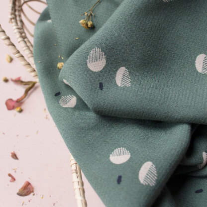The delicate "Seed" pattern recaptures the fineness and subtleness of the seeds that gave birth to a sweet winter garden. Like a small seedling, reinvented dots are randomly sprinkled over the plain backgrounds. This "Seed" viscose, introduces a new crepe weave in the Atelier Brunette catalogue: with an embossed crepe and a delicate and supple texture which adds charm to this graphic pattern. This fabric has the perfect drape for sewing dresses and tops.