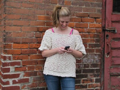 The loose, slouchy, off-the-shoulder fit is both casual and stylish – with just the tiniest hint of an 80’s vibe. Bold cables worked up the sides of the body and sleeves and along the shoulders not only provide some textural and visual interest, but also take the place of seams – avoiding any extra bulk in an already bulky yarn.