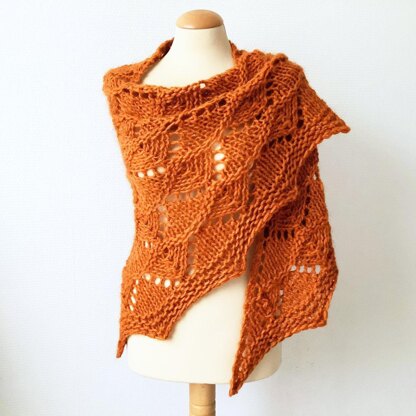 Atomic Tangerine was inspired by the lovely, vibrant yarn I bought on vacation in Sweden. While the version pictured is knit in a bulky-weight yarn, the patterning is very flexible and can easily be knit in other yarn weights. Just repeat the body pattern until your shawl is the desired size!