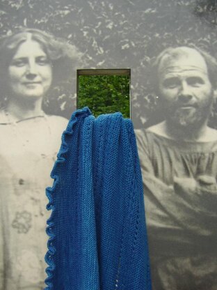 It’ s knit sideways in garter stitch intercepted by lace sections, which keeps the knitting diversified. The picot border is worked together with the main body and a fanciful ruffle border put the finishing touch to it!