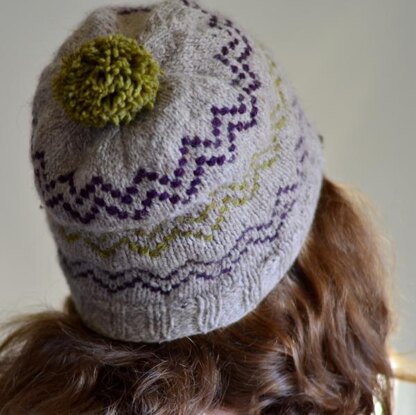 Construction: This hat is constructed from the bottom-up, and features tidy, six-pointed star crown shaping. The hat is sized for a slightly slouchy fit.The pattern includes charted and written instructions for the woven chevrons Measurements: One Size (Teen/Adult) Hat Circumference (At Brim): 18¾ inches; 47.5 cm Hat Circumference (At Widest Point): 22¾ inches; 57.5 cm Hat Height: 9¼ inches; 23.5 cm