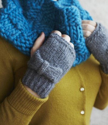 These fingerless gloves are adorned with a sweet little bow.