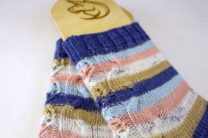 The pattern is written for the magic loop method for knitting socks; however, the design could be worked on double-pointed needles or mini-circulars instead should you prefer.