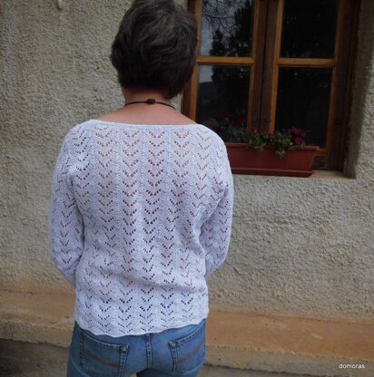 AUGUSTA is a beautiful and useful jumper. The lace pattern is enjoyable to work and not at all difficult. The execution is detailed described in the written pattern with charts. One has to know how to knit and purl and picking up stitches along the neck. The sleeves are set-in sleeves. Worked flat. 2 circular needles double pointed needles for the neck band.