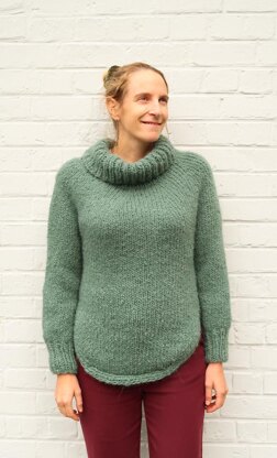 /PATTERN DETAILS • XS to 5XL • Easy level • Wide turtleneck • High split hem with rounded sweater bottom • Worked top down in the round (seamless) • Techniques used / Special stitches: Full explanations are given in the pattern. • Illustrated step-by-step photos