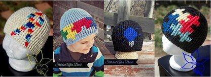 These four hats were made in honor of Autism Awareness month (April). This set of patterns features FOUR different designs in THREE sizes each. That's a total of TWELVE patterns! That brings each pattern to less then a dollar apiece. :)