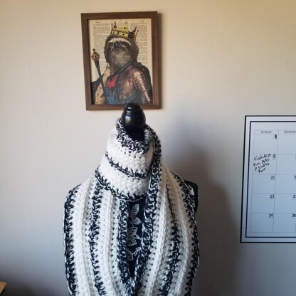 This beautiful contrasting scarf can be made in either one colour or two. If using two you will need 1 skein of contrasting colour and 2 of the main colour.