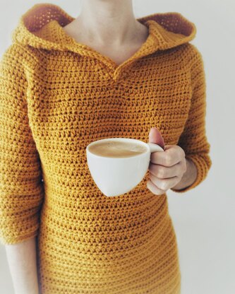 The Autumn Bee Dress is the dress with a hood you've been waiting for! It's comfortable and cozy and the oversized hood makes you want to snuggle in it all day. Make it either as a dress or as a hoodie and shape it to fit your body. The pattern guides you through how to do this. The pattern is easy to follow. It includes written instructions and many photos guiding you through how to create the perfect garment.