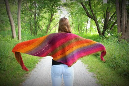 I designed this easy knit for those early autumn days, where the air is cool in the morning and warm by afternoon. The slender long shape and lightweight yarn allows it to be worn long over the shoulders and arms as a shawl, or wrapped around the neck as a scarf.