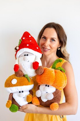 This adorable set includes three plush crochet gnome patterns - the Fly Agaric Gnome, the Mushroom Gnome, and the Pumpkin Gnome. Each one is soft, cozy, and full of autumn magic. These crochet patterns are beginner-friendly, with detailed instructions and step-by-step photos.