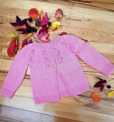 Autumn leaves is a light and airy cardigan, perfect to wear on an autumn day or late summer evenings. The sleeves are knitted separately flat and kept on stitch holders. The cardigan is worked from the bottom up in one piece, then the sleeves are joined to the body to form the yoke. Climbing leaves around the yoke with sparkly button closure will delight any young girls. Simple leaf design, popping in and out giving its 3D effect. Row by row instruction makes this into a relaxing weekend project.