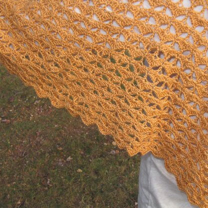 Like falling leaves in the forest, lacy motifs ripple down from the top of this simple but stunning shawlette. Autumn Leaves’ open work crochet is light and airy, yet warm and comforting. Drape it over your shoulders like a classic shawl or wrap it around your neck like a scarf, its versatility makes it the perfect fall accessory. As you crochet the lace stitch, your fabric may look crinkled, but don’t worry! Blocking will relax and smooth the motifs into romantic looking hearts or butterflies.