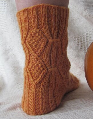 These cuff-down socks were inspired by the yarn— the colorway Maize in FibroFibers Archie, dyed by my good friend, Brooke. The colors evoked Autumn to me, and when I discovered this stitch pattern I knew it would be the perfect pairing! Utilizing cluster stitches and increases/ decreases, these socks are great for variegated yarns that might pool. They also look just as good in a solid color yarn!