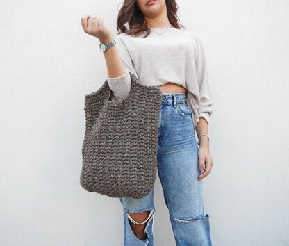 The Ava is a big crochet bag with small handles and made with super bulky yarn. It’s the kind of bag you can place a whole lot of things inside and it will carry them without a complaint.