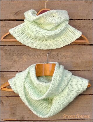 The scarf and cowl are worked bottom-up (no seam/sewing) and are reversible.