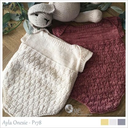 This cute little Ayla Romper is a perfect knit for layering up on cooler days. Front and Back knitted separately, you will need to pick up stitches around the neckline and armholes, and seam the sides. Recommended for the Intermediate Knitter.