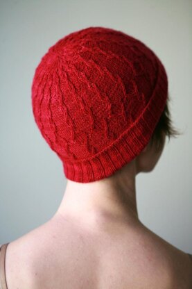 Feather light and delicate, Azurite will make a sweet addition to your wardrobe—or your jewelry box. The gossamer lines of the stitch pattern form a chain of jewels around the crown, creating a semi-precious style that can be worn with the ribbed hem folded up like a beanie, or left long and slouchy. The lovely lightweight fabric keeps you warm without bulk, and the charted and written instructions are delightfully easy to follow.