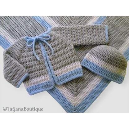 Crochet pattern baby blanket, hat and cardigan set. ♥♥♥