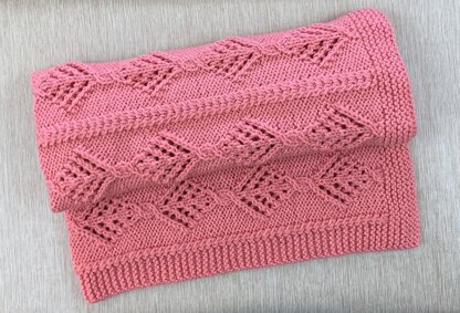 This beautiful baby blanket is knitted in a lovely stitch that combines columns of simple cables and lace "little trees".