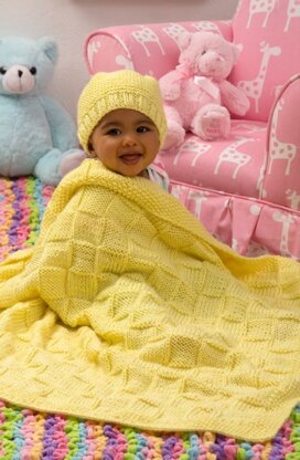Baby Blocks Blanket and Hat Set in Red Heart Soft Baby Steps Solids - LW4306