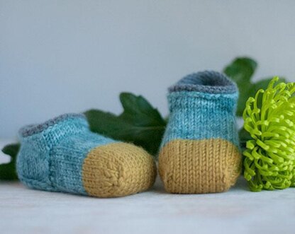 Knitted baby shoes that stay on. A really cute shoe that stands up to kicking, crawling and pulling for reliably warm little toes! No fiddly ties, they slip on easily then the structured internal band keeps them on, while still being flexible and comfy.