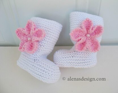 Embellishments make this booties look cute and adorable while keeping your child’s feet nice and toasty. These booties are knitted in two needles. The pattern is written for a size 0-3, 3-6, 6-9 and 9-12 months, but all sizes have a lot of stretch, and easily fit much longer than normal.