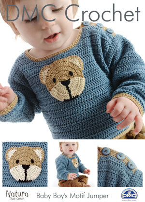 Baby Boy's Motif Jumper in DMC Natura Just Cotton - 15094L/2 is a Crochet pattern by Dmc, available as a Leaflet and includes instructions in English. Super fun to make, this pattern could be your next masterpiece!