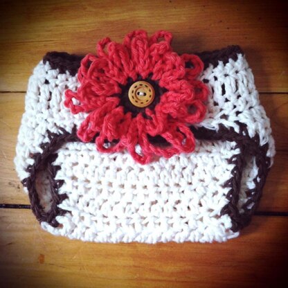 This is a PDF crochet pattern for a simple diaper cover, very versatile and easy to personalize to match any hat. Also included is the pattern for my Loopy Flower, in two sizes.