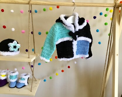 Baby Cardigan can also be used as a set with Winter Baby Boot&Hat Set N 291 (size 0-6 months / 6-12 months).