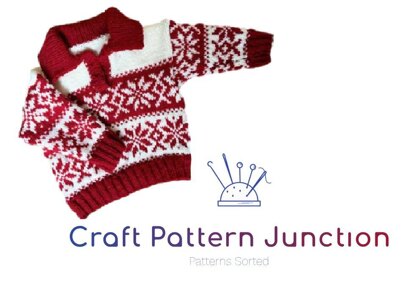 Christmas sweater (new-born to toddler sizes) with stars This sweet little Christmas jumper with stars splashed across the body and sleeves. It's designed to be a very generous fit, with plenty of ease. The pattern comes with Fair Isle charts. You could break away from the traditional red and white and use blue and white or green and white, which also looks very effective.