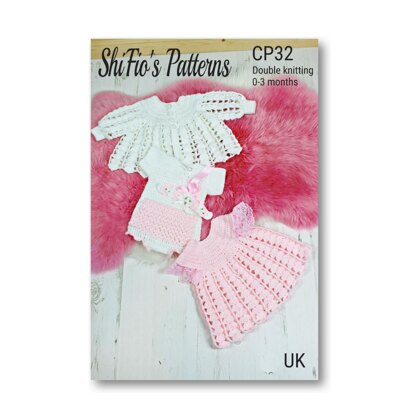 The crochet pattern is easy to follow and has instructions for the dress, jacket & onesie