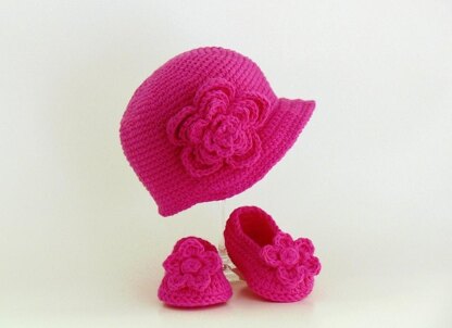Bonnet and matching slippers, so sweet for any little girl! Easy to make. Looks perfect in either cotton or wool and can be made in 1 or 2 evenings.