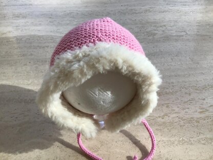 Really Quick And Easy Baby Girl Fur Trim Hat - Made In Garter Stitch On Two Needles in one piece with small back seam. This Pattern Makes Four Sizes