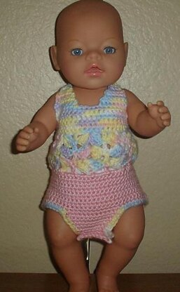 The pattern indicates where to stop for a bikini top and a halter top as well as showing how to make the onsie