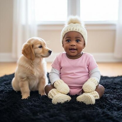 Such a soft and sweet little set for your 6month old for the cooler weather. The hat is done in fpdc, and bpdc’s which make even a little thicker for warmth. The booties and mittens match it perfectly with those stitches used in them as well. I used the bernat aran sparkle to give it that little touch of holiday bling. But any worsted weight yarn or color would be just as pretty.
