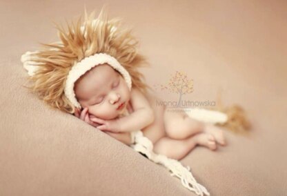 I used to have a business selling hand knit newborn photo props. This lion set was a best seller and you can use this pattern to make your own baby lion set (bonnet and tail).