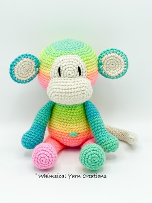 This baby monkey is is 7.5 in/19 cm tall when using recommenced hook size, worsted weight yarn and yarn under. This pattern is worked in continuous rounds. The skills used in this pattern are single crochet, magic ring, increase, decrease and finish off. This is a beginner friendly pattern. This pattern is written in US terms me is only available in English. If you need any help while making it, please reach out.