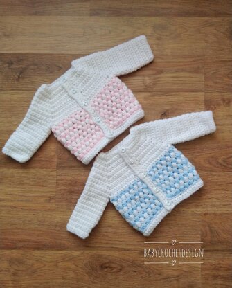 This sweet puff stitch cardigan is lovely and cosy and can be worked all in one colour or in as many colours as you like.